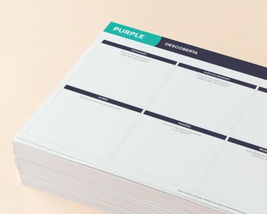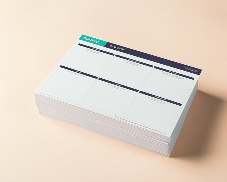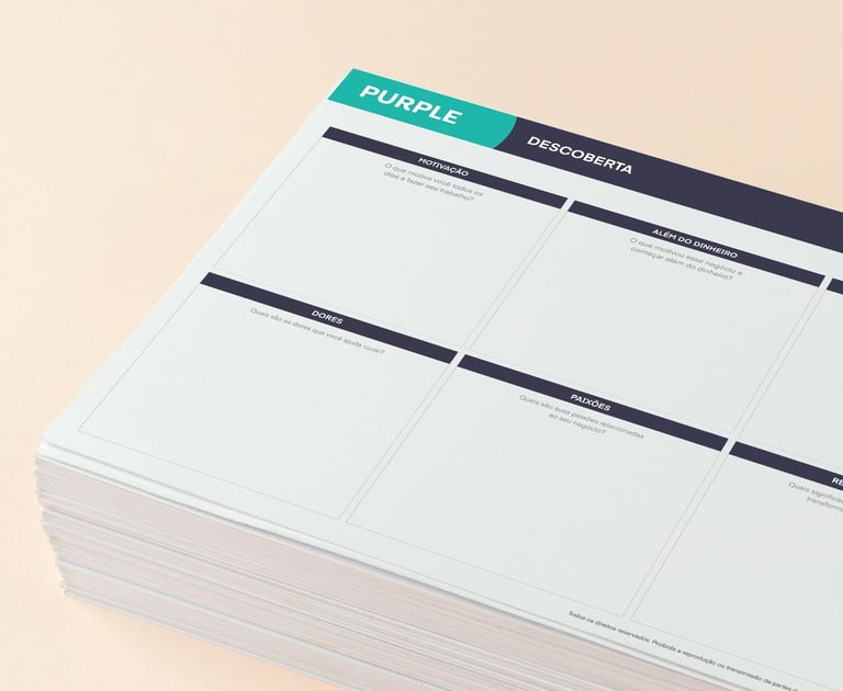 Uma das ferramentas mais queridas durante o processo, PURPLE© é nossa perspectiva de propósito de marca dividido em quatro momentos: Descoberta, Movimentos, Aplicação e Monitoramento.