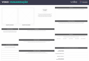 Dois canvas exclusivos do Voko: um para aplicar arquétipos na cultura organizacional e um segundo para construir sua narrativa arquetípica.