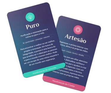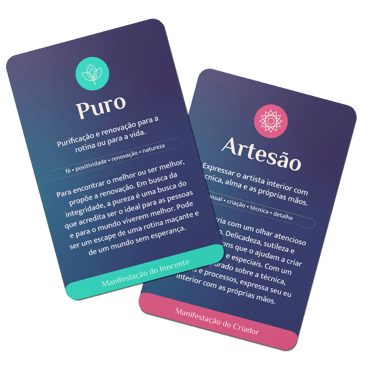 2 decks de cards digitais + e-book: 60 manifestações arquetípicas, 12 de benefícios e arquétipos e e-book de tom de voz.