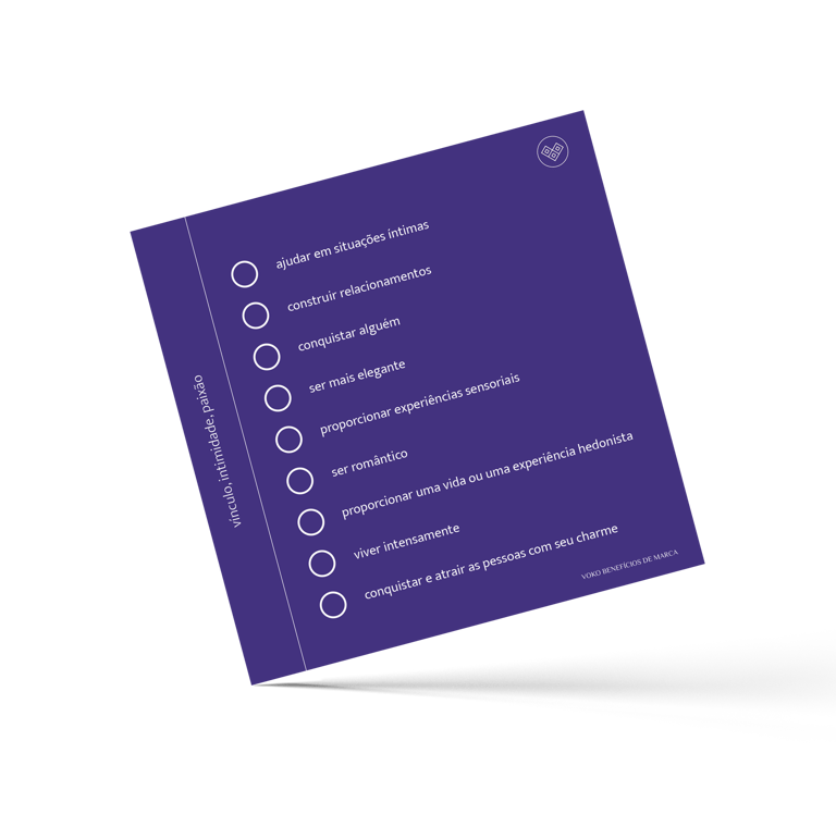 Outra novidade são as 12 cartas de benefícios de marcas e arquétipos. Essa ferramenta é ótima para usar no processo de imersão de posicionamento, te ajudando a entender o quanto a marca promete benefícios relacionados a cada um dos arquétipos que estudaremos.