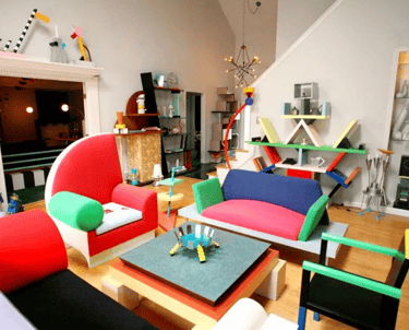 O Maximalismo tem uma íntima conexão com o Memphis Design, movimento dos anos 80 que tinha como essência a radicalidade, bom humor e ultraje.