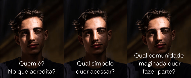 Se João fosse seu público, as definições sobre quem ele era e no que acreditava seriam bem importantes para traçar um perfil sobre esse possível comprador. Isso também ajudaria a entender seu estado de espírito, o sentimento que o levou, naquela quinta-feira a noite rolando seu feed e vendo stories, a comprar o produto. Era um sentimento de uma busca por um símbolo que ao consumir rapidamente o levava a um patamar diferente em sua vida, pelo menos como uma tentativa. Sua frustração com o trabalho e vontade de mudança o fizeram acreditar na promessa daquela marca.